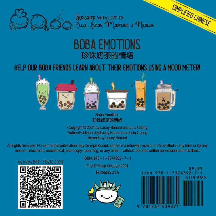 Social emotional awareness and development is something that is important for all of us to develop and learn about, especially our children. Boba Emotions introduces children to a range of different emotions in both English and Chinese.